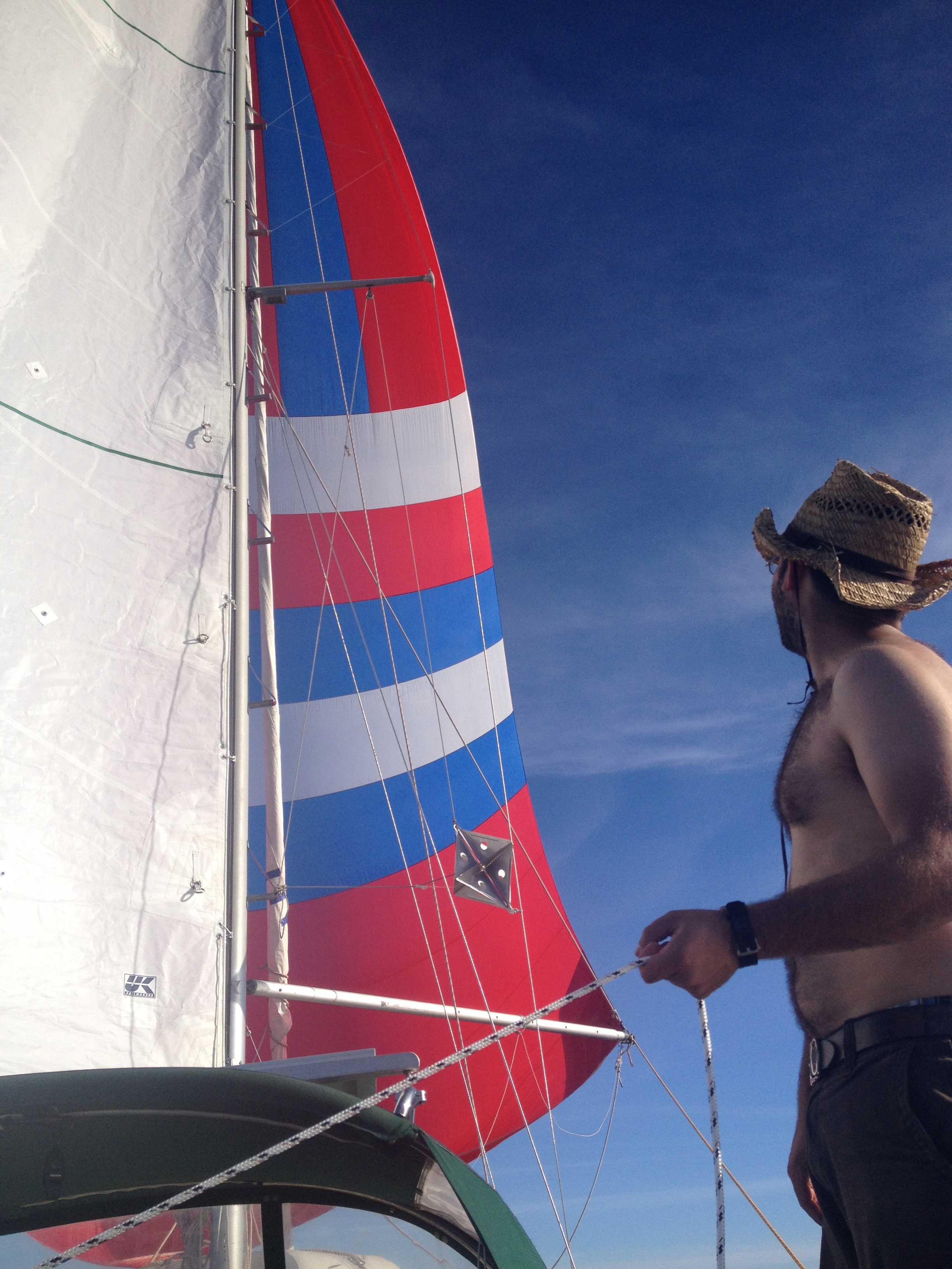 We left Newport Beach feeling rested and a bit spoiled. We also picked up a new crewmember, Daniel’s friend Toralf from Germany. (for those of you who think a trip from CA to Cabo is to far to visit us…think again) The sail to Dana point was full of first time events. First time Toralf had been on the Pacific or seen a sea lion. First time Heather saw a pod of dolphins up close and personal and the first time Daniel put up his colorful (s0me may say French looking) spinnaker on Stormy. We dropped anchor in Dana Point around 5pm. Rum shots were poured, conversation was spirited!