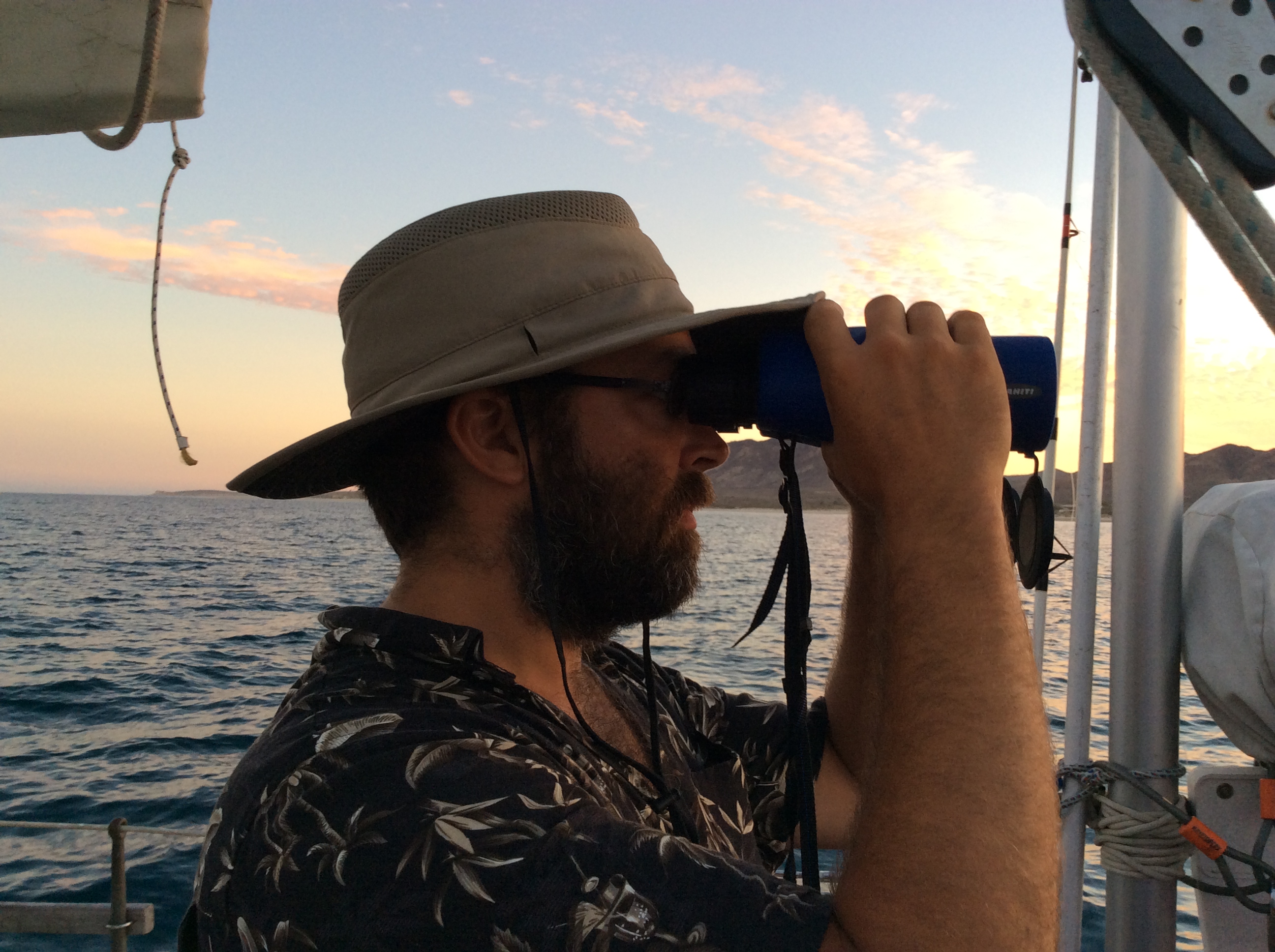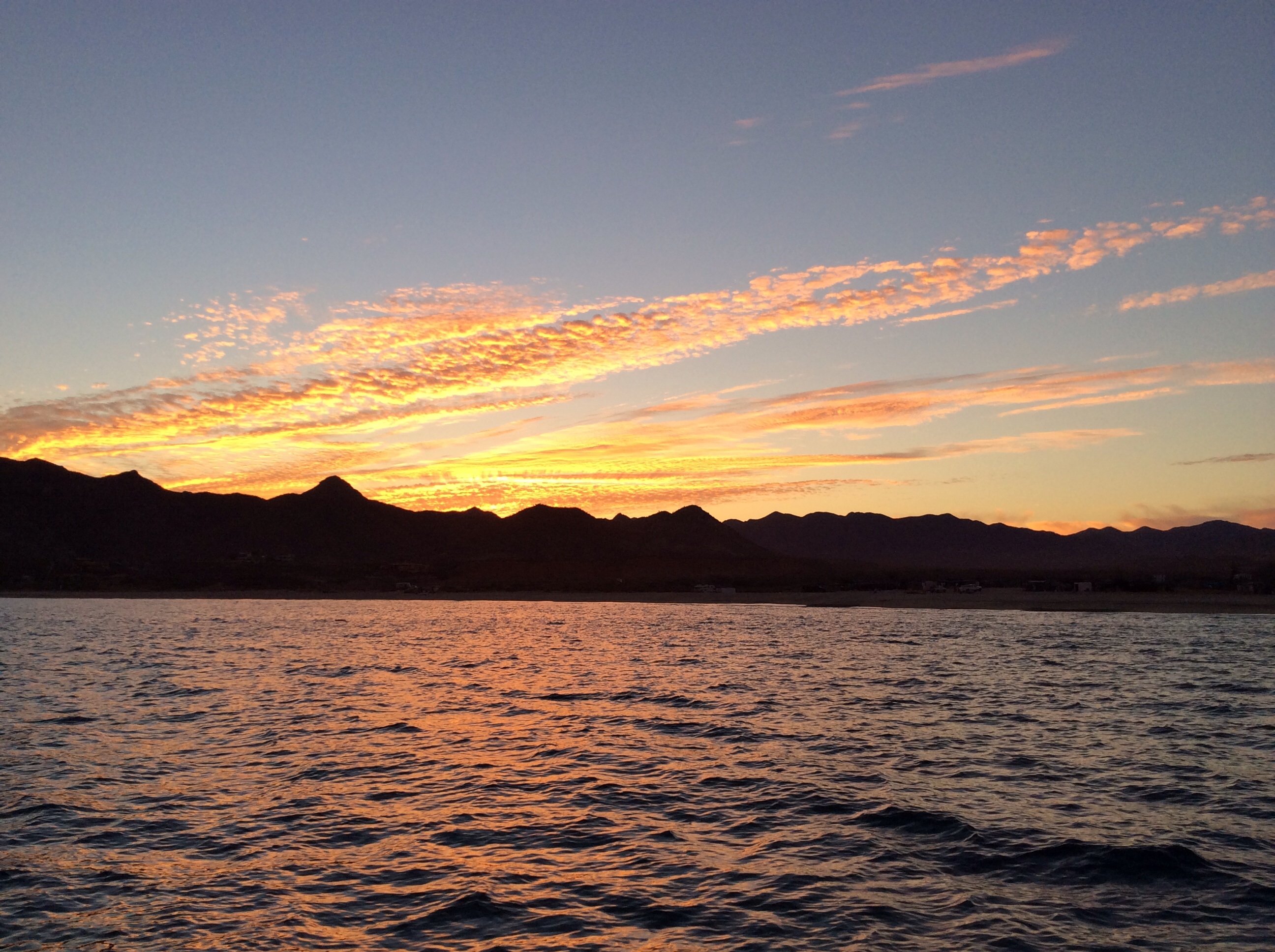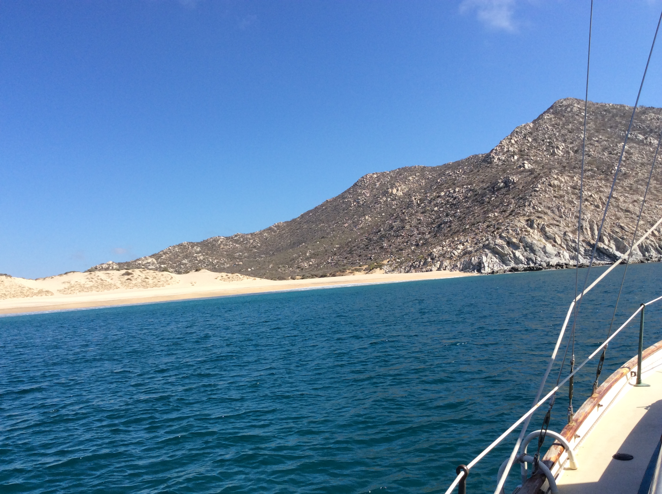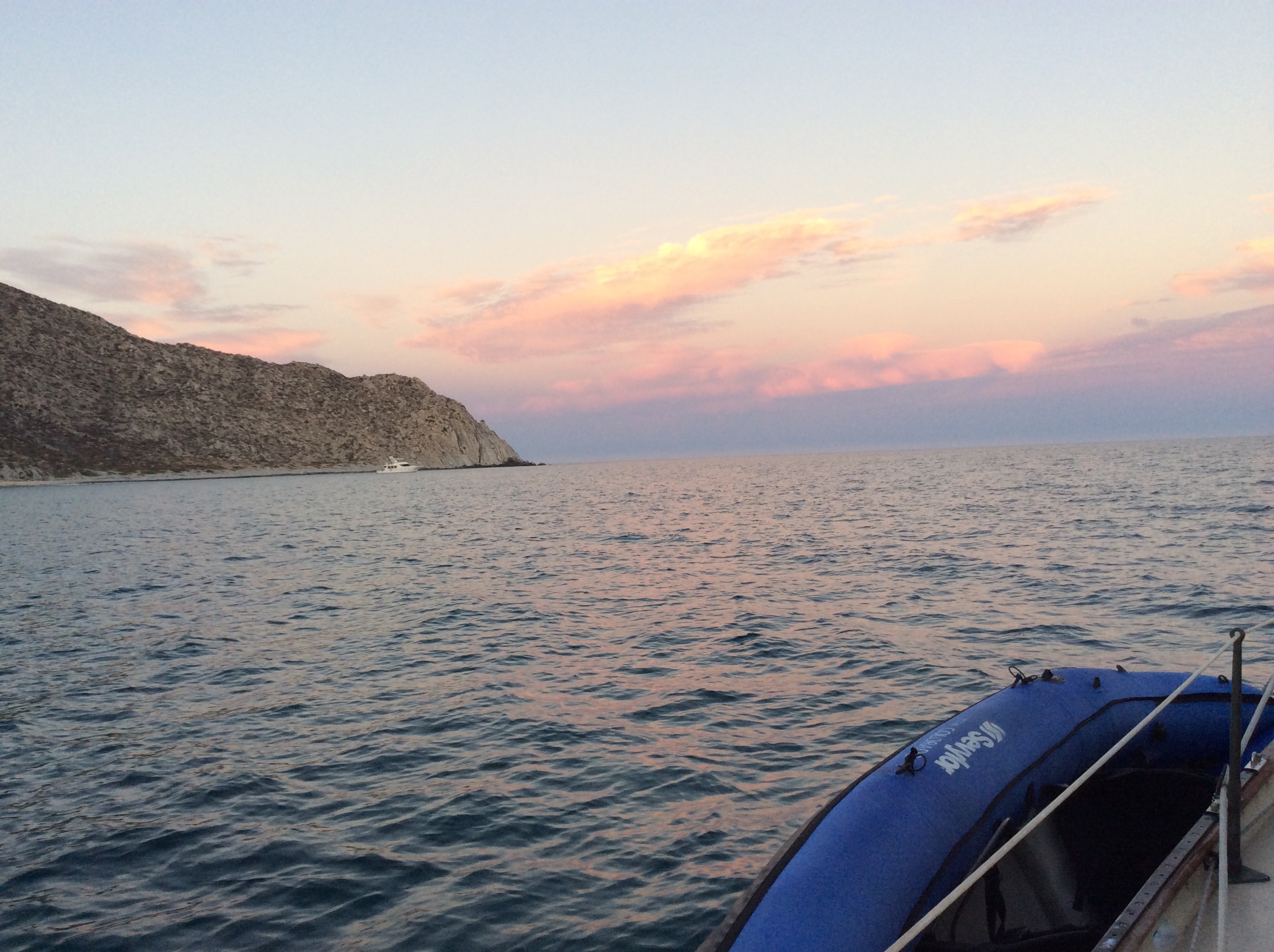 It is our first night in the Sea of Cortez (or Gulf of California, still not sure what to call it). It is an 8 hr trip from Cabo to Los Frailes. There was no wind, so we prepared ourselves for a dull day of motor sailing. About an hour in, Daniel saw something in the water just off the bow. There were three whales, all larger than the boat, right in front of us! We made a sharp 90 degree turn to avoid running straight into them. We sailed along side them just a boat length away, for a quarter mile. There were whale sightings the rest of the day. They were all around us, jumping up and landing on their backs, slapping the water with their fins, blowing water into the air and arching their backs, smoothly gliding through the water. Sea World can suck it!!