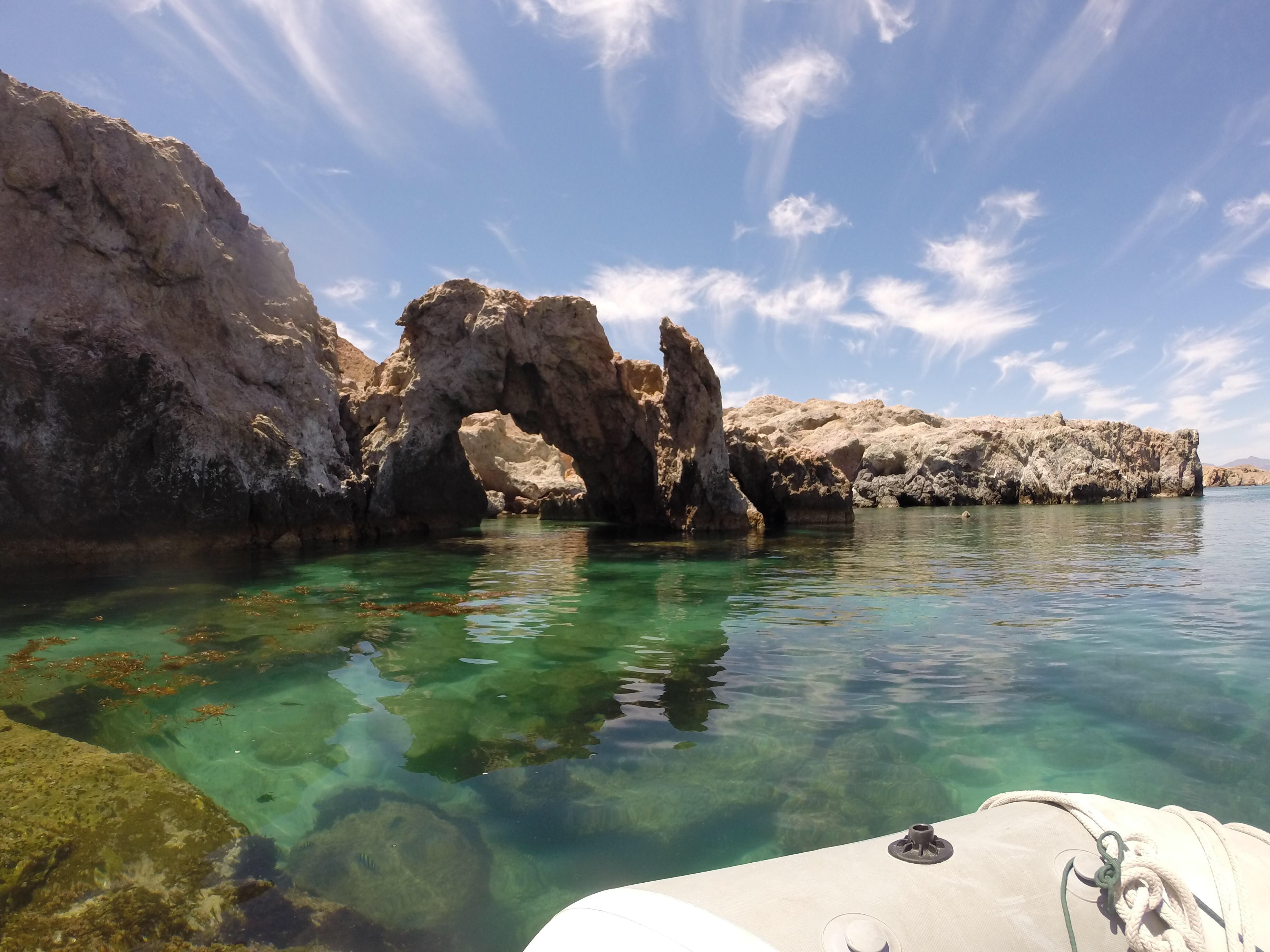 We have had the anchorages around the island to ourselves, and it’s the first time since we rounded Cabo that we have anchored somewhere where the best and most protected spots weren’t already taken by other boats. We have had beautiful snorkeling with perfect visibility, great spear-fishing, fun hiking, colorful sunsets (again, with no other boats!), sea caves!, and today we had an entire DAY of dolphins and porpoises—some so big that I thought they were orcas at first.
