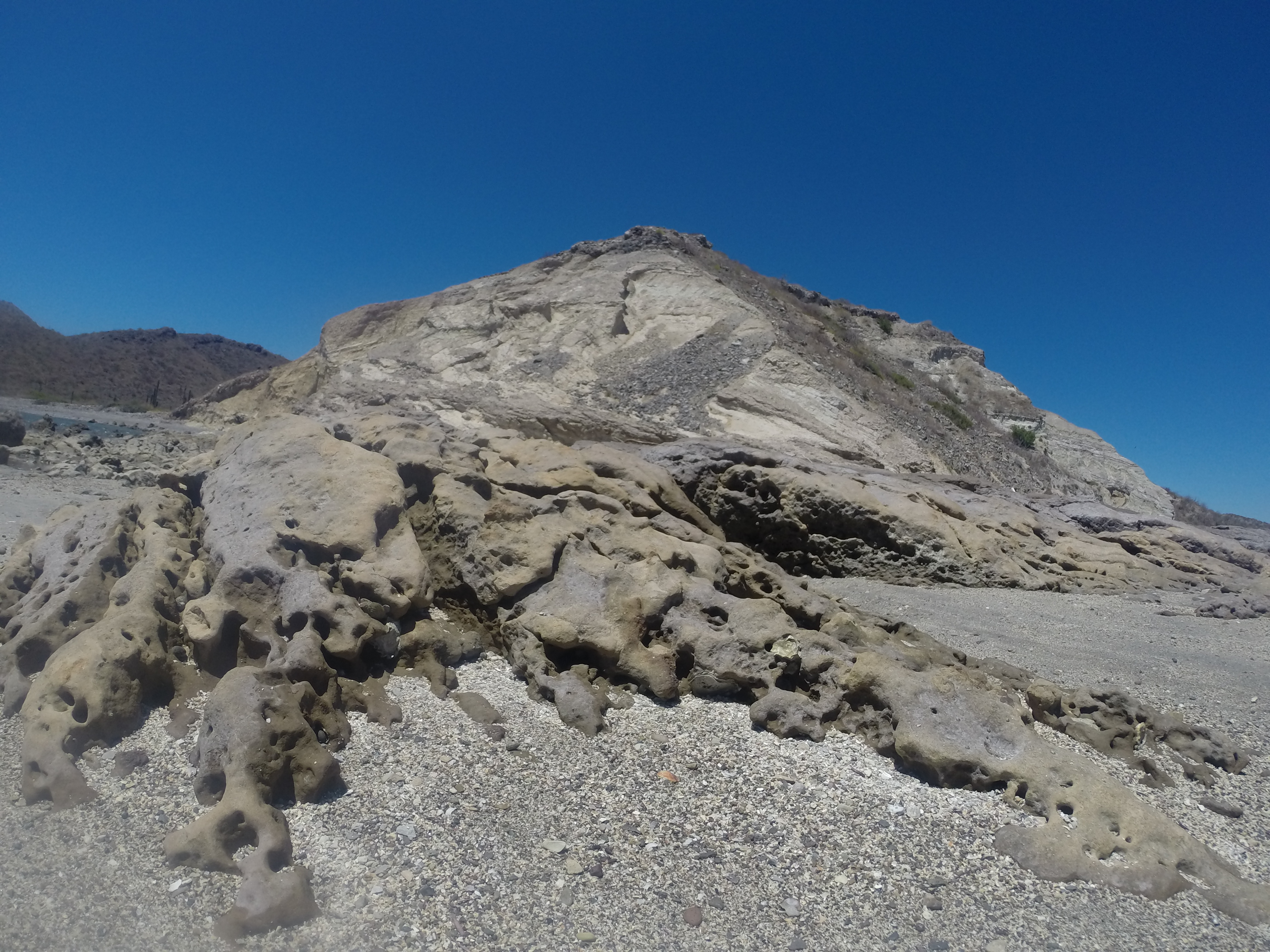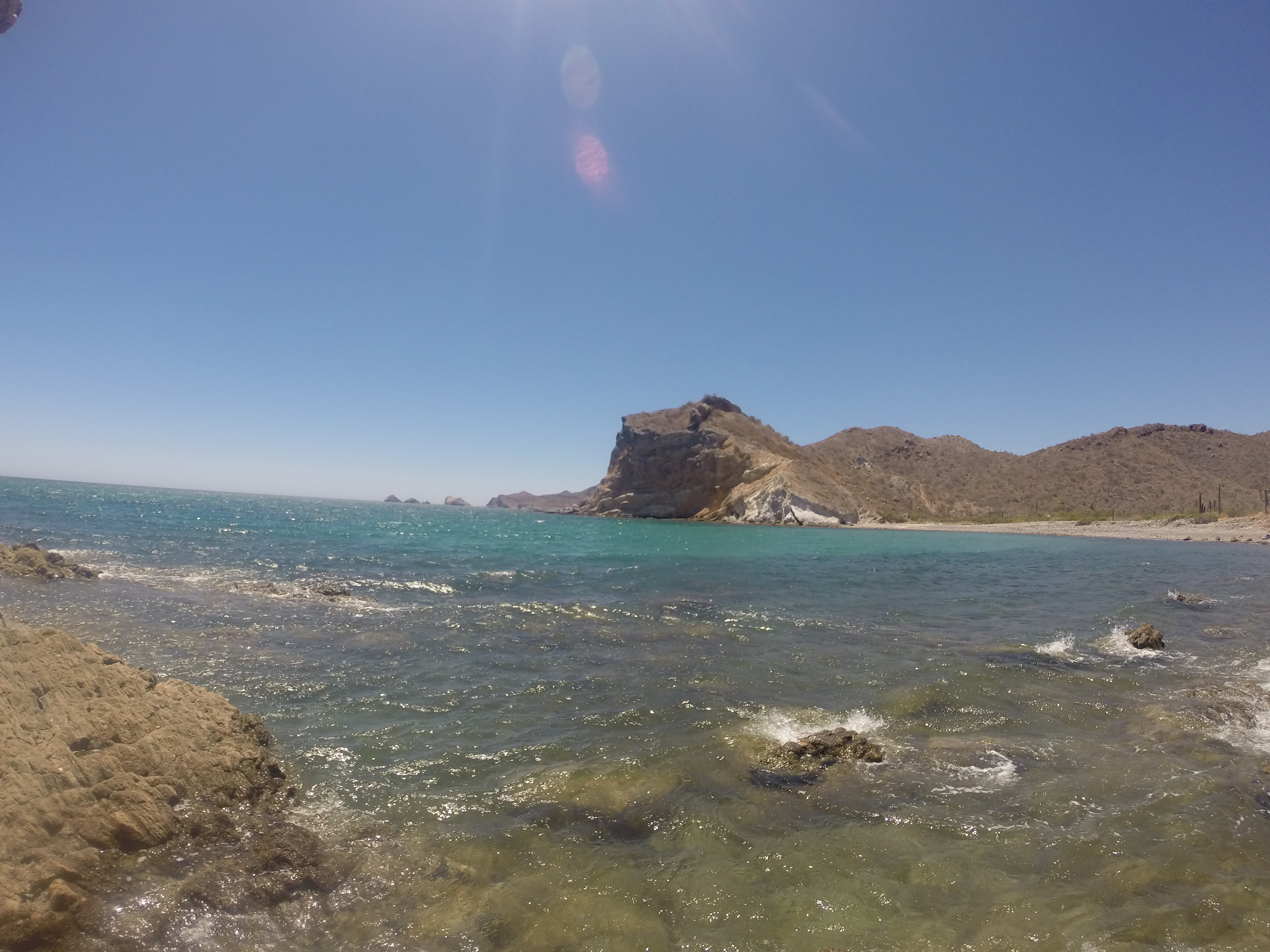 We are currently at anchor in Caleta San Juanico. We motored about 4 hours on a glassy, calm sea from Isla Carmen only to arrive and find easterly thermal winds blowing through the anchorage at 10-15kts. At least we were able to cool off a bit.