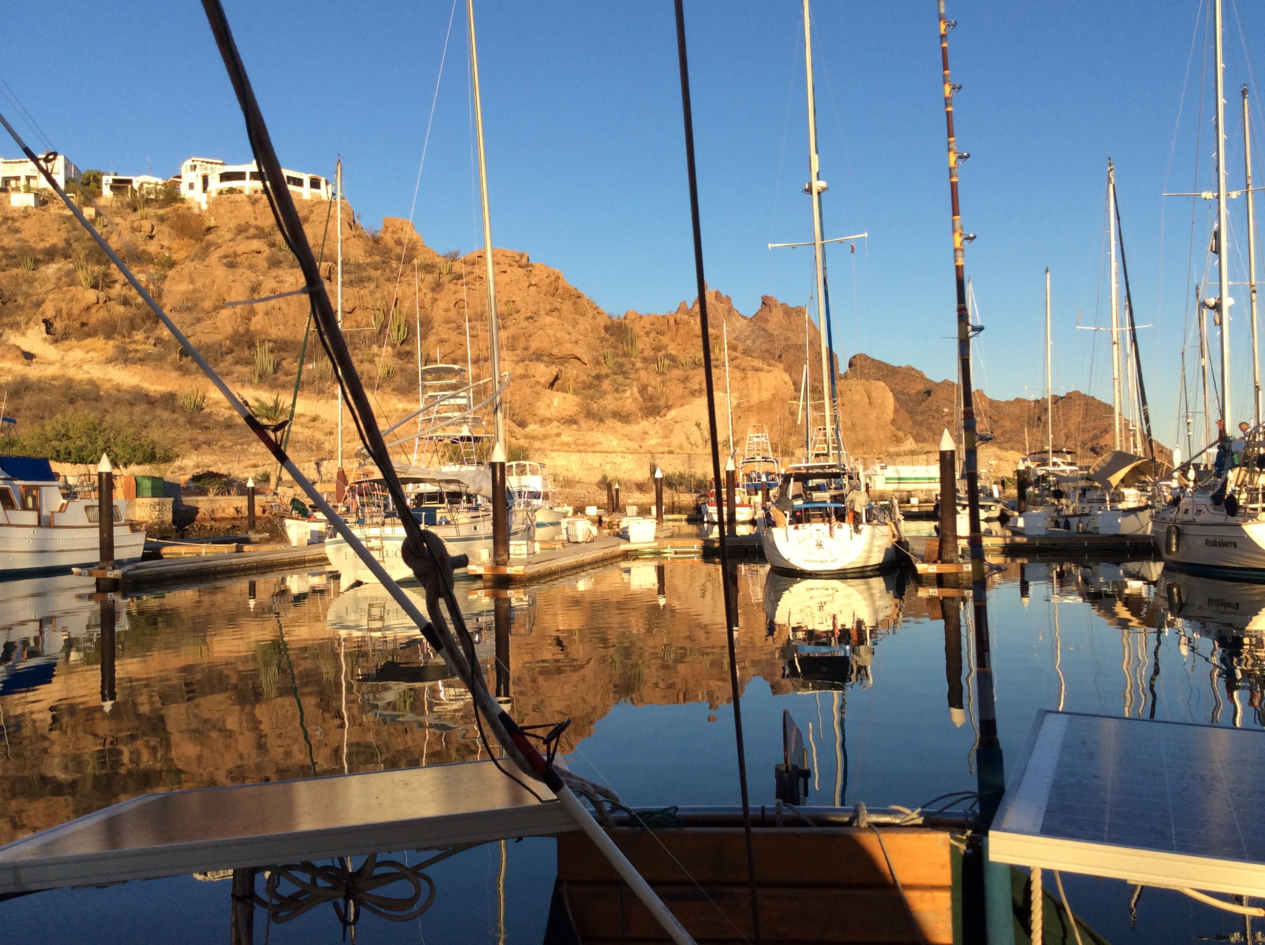 We are leaving this morning (Wed. 5/28/14 0830) to make the big jump across the Sea of Cortez from Isla San Marcos to San Carlos. It’s about 70nm, and we should arrive by noon tomorrow.
